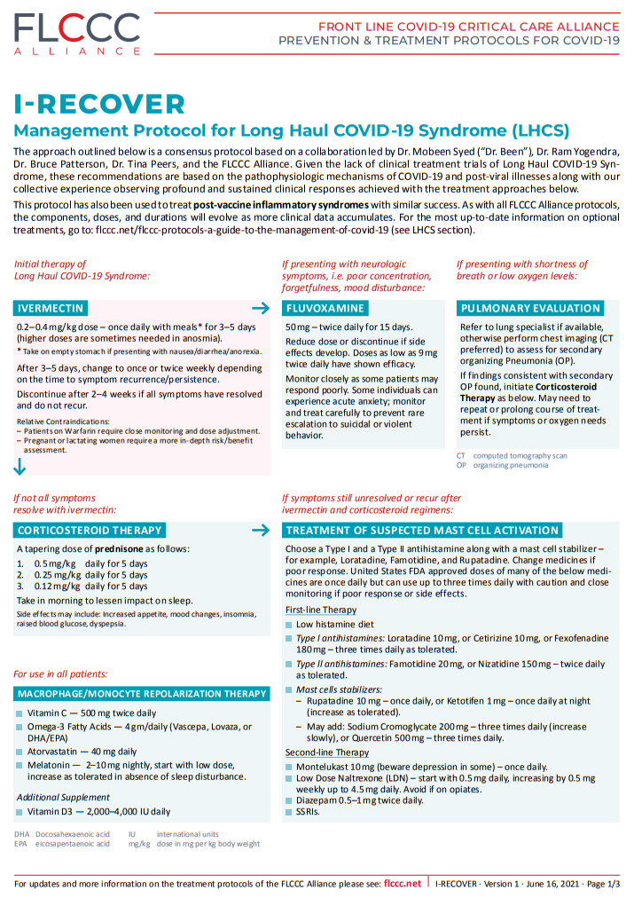 As with all FLCCC Alliance protocols, the components, doses, and durations will evolve as more clinical data accumulates.